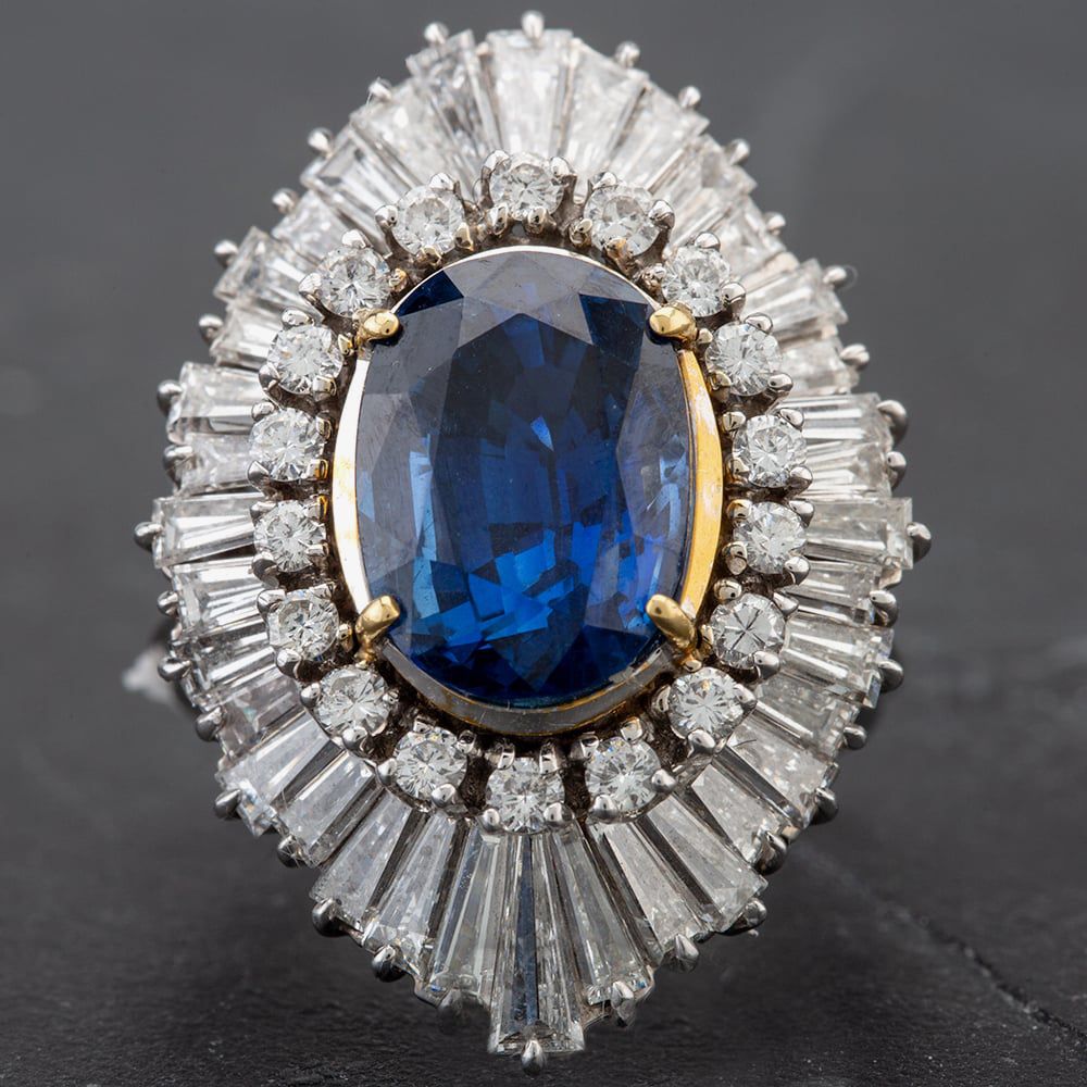 14ct White Gold Oval Sapphire 6.08ct with Diamond Cluster Ring