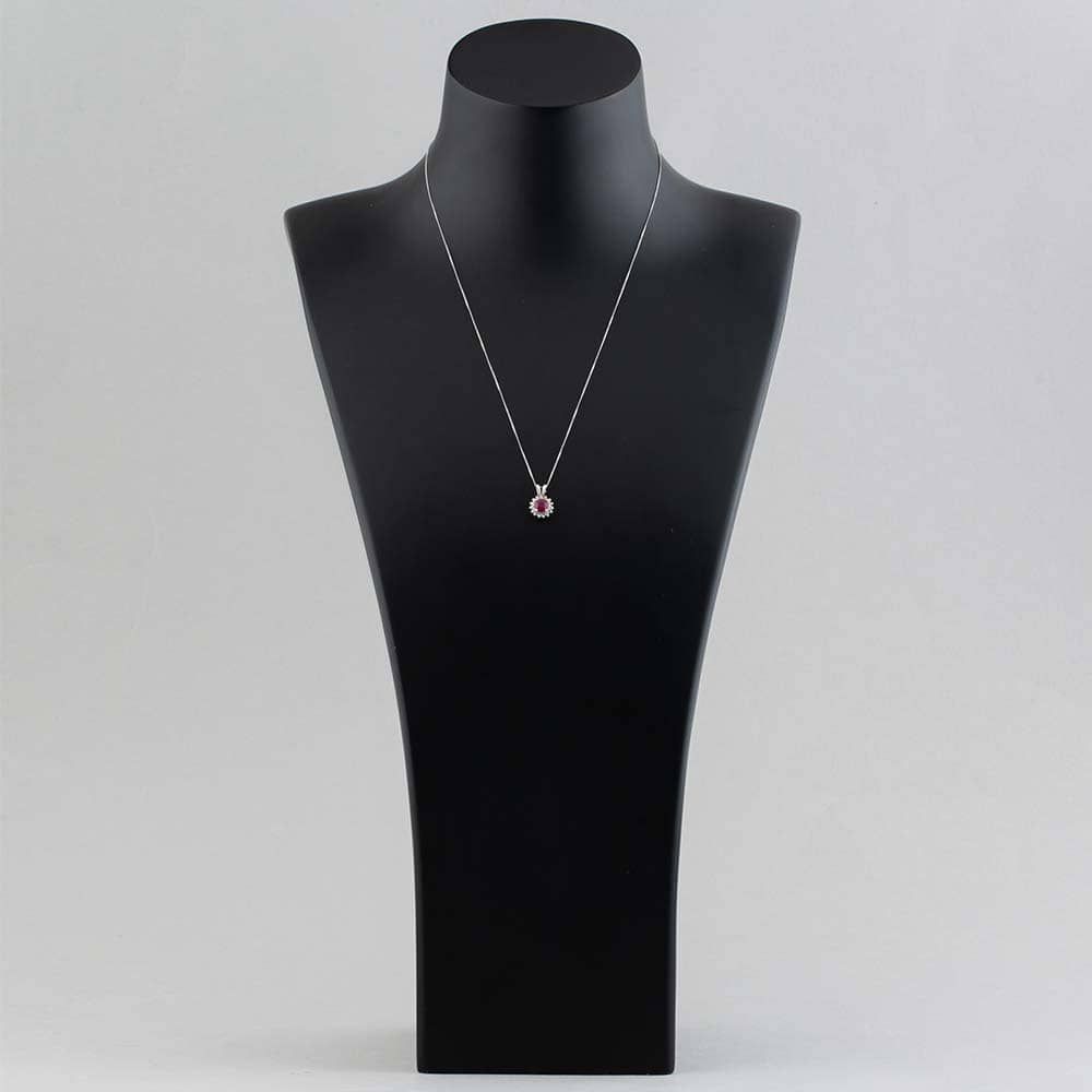 14ct White Gold Round Cut Ruby & Brilliant Cut Diamond Pendant & 18 Inch Curb Chain