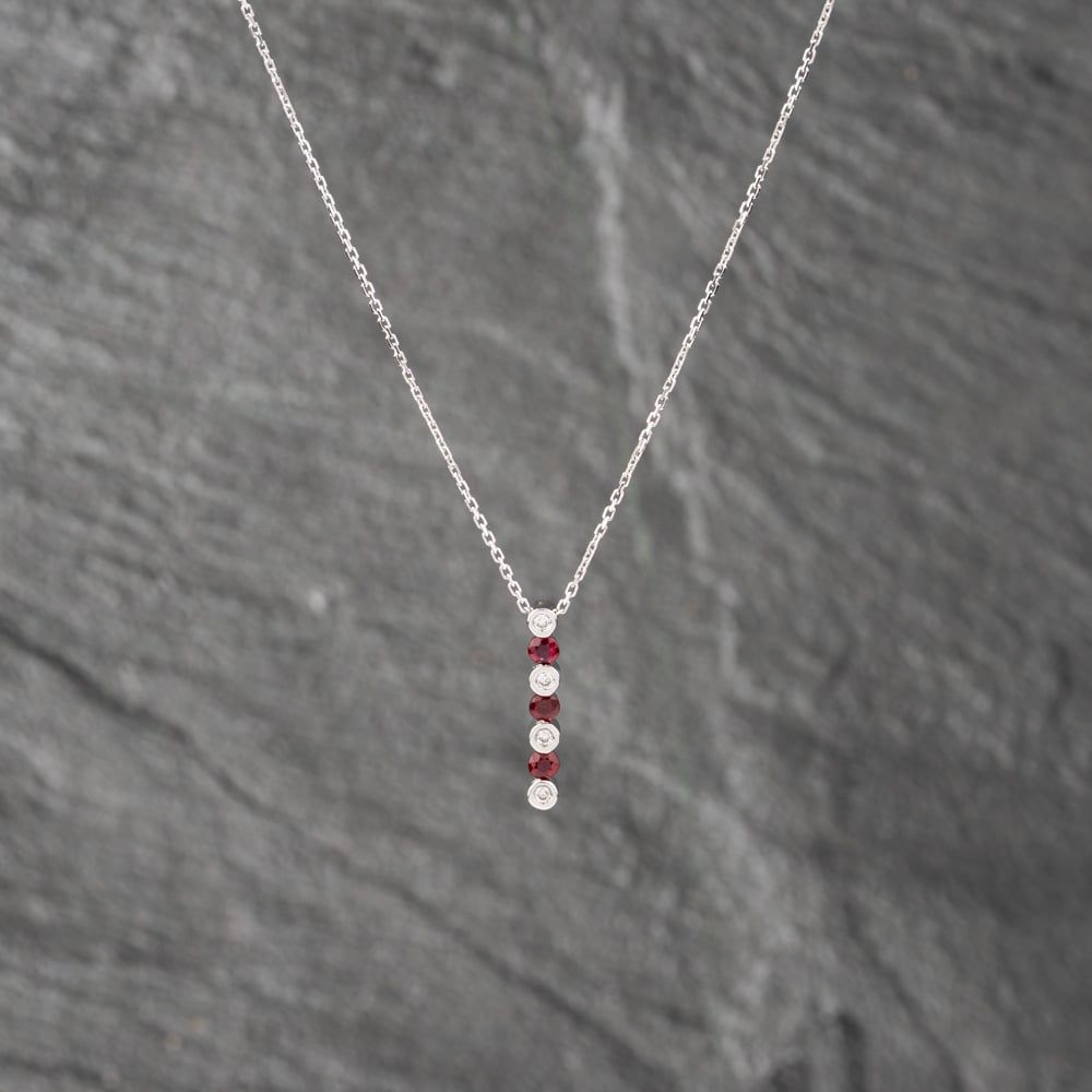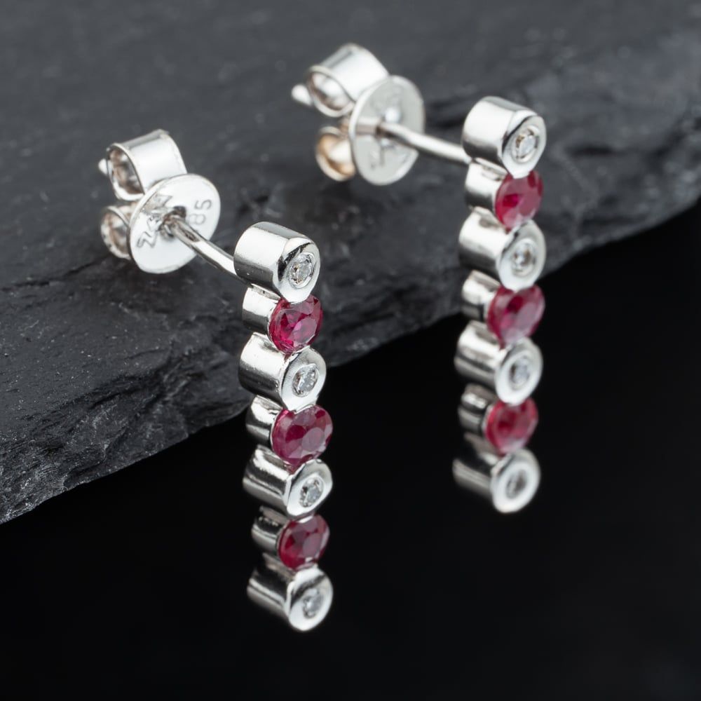 14ct White Gold Ruby & 0.14ct Diamond 16 Inch Pendant & Earrings Jewellery Set