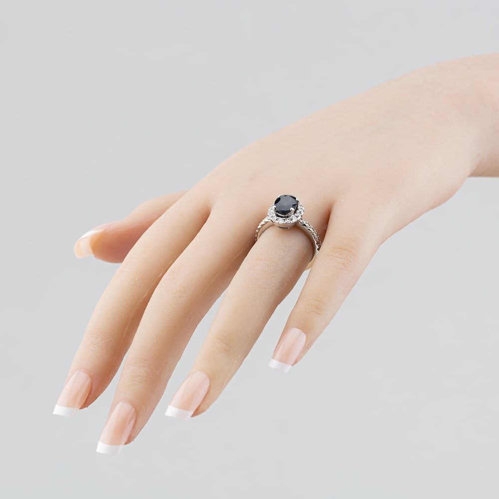 14ct White Gold Sapphire & Brilliant Cut Diamond Oval Halo Cluster Ring