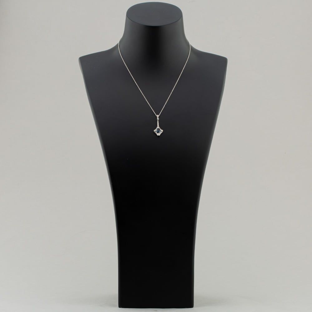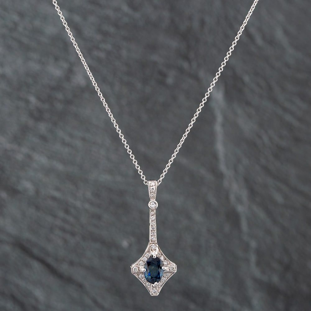 14ct White Gold Sapphire & Brilliant Cut Diamond Pendant & 16 Inch Trace Chain