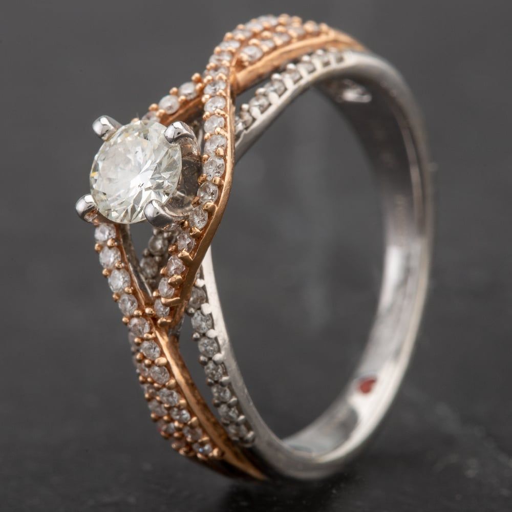 14ct White & Rose Gold 0.40ct Solitaire Diamond with Diamond Shoulders Ring
