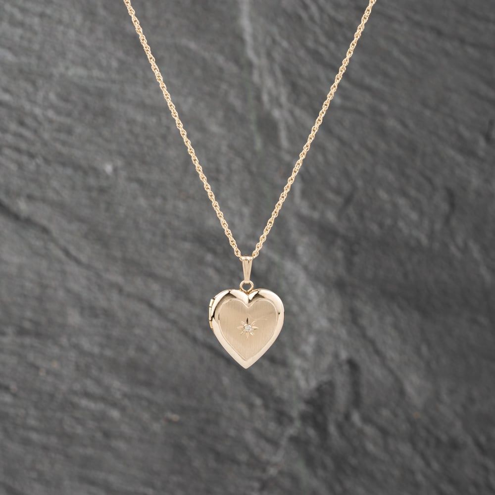 14ct Yellow Gold 0.01ct Diamond Heart Locket Pendant & 18 Inch Prince Of Wales Chain