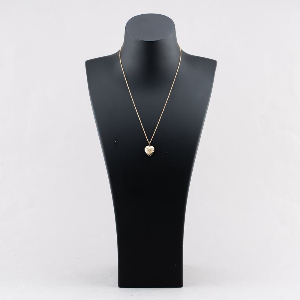 Second Hand 14ct Yellow Gold 0.01ct Diamond Heart Locket Pendant & 18 Inch Prince Of Wales Chain 41142543