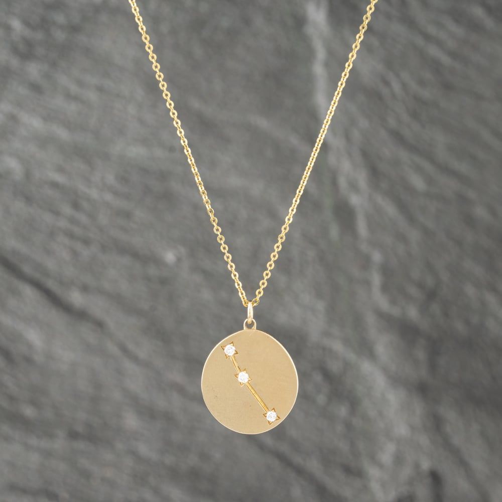 14ct Yellow Gold 0.07ct Brilliant Cut Diamond Aries Round Pendant & 16 Inch Trace Chain