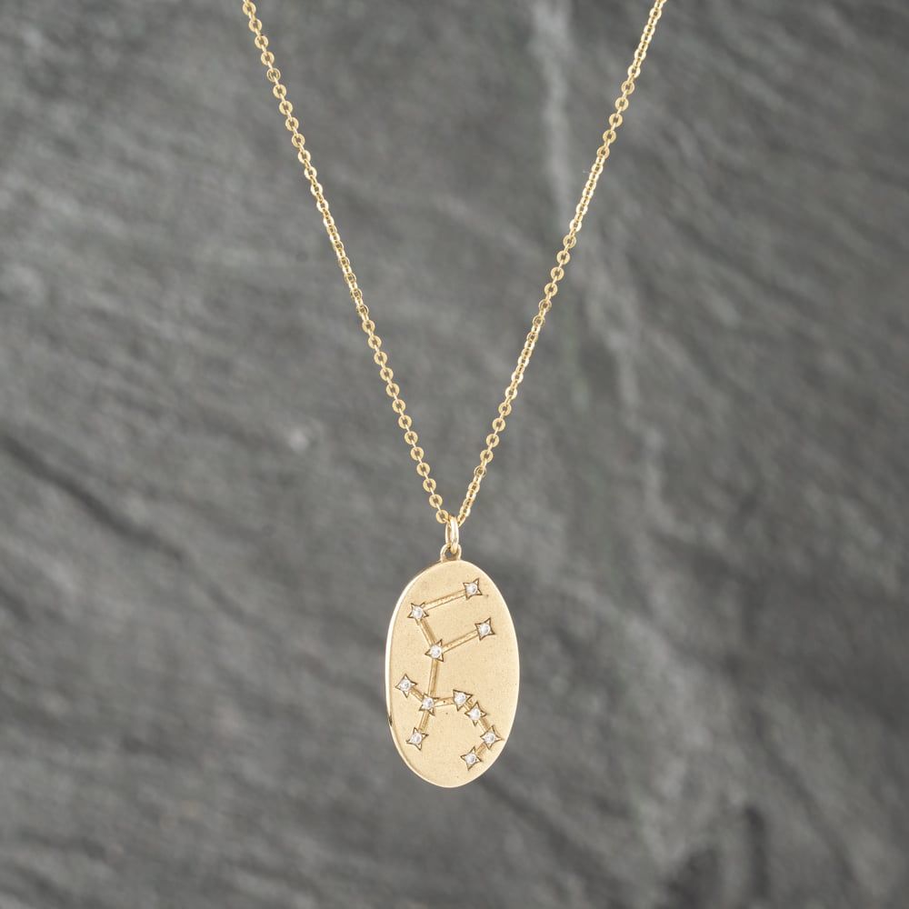 14ct Yellow Gold 0.09ct Brilliant Cut Diamond Aquarius Oval Pendant & 16 Inch Trace Chain