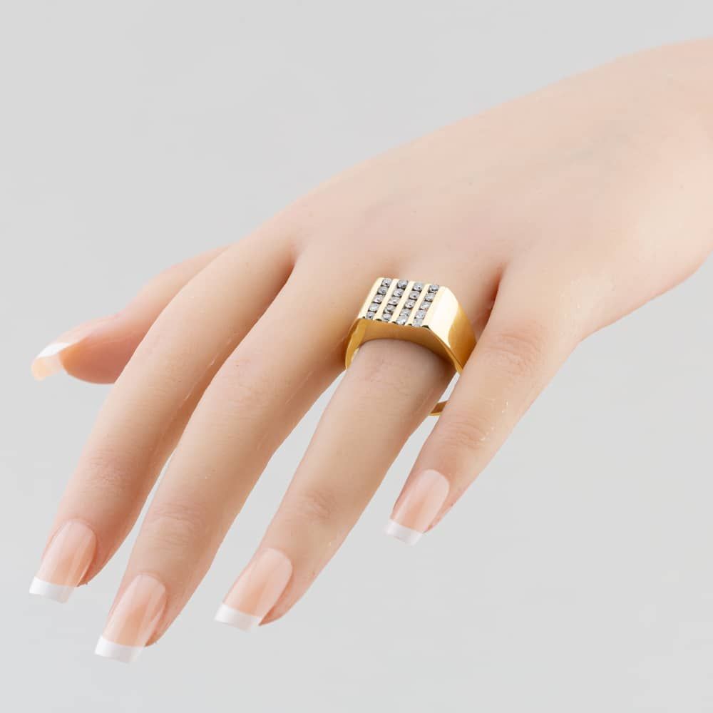 14ct Yellow Gold 0.90ct Brilliant Cut Diamond Gents Square Four Row Signet Ring