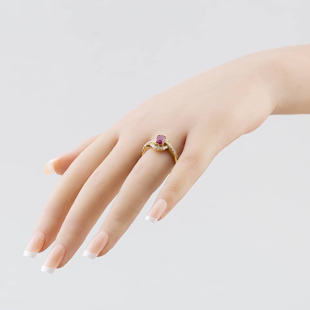 Second Hand 14ct Yellow Gold 1.14ct Oval Cut Ruby & 0.66ct Brilliant Cut Diamond Cluster Ring 41481601