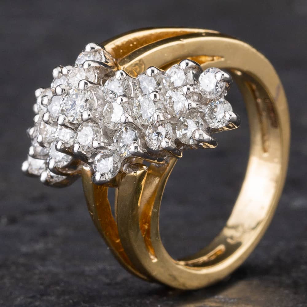 14ct Yellow Gold 1.50ct Brilliant Cut Diamond Multi Stone Cluster Ring