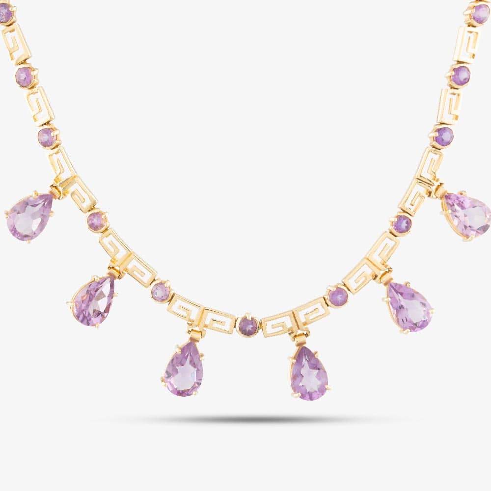 14ct Yellow Gold Amethyst 18 Inch Collarette Necklace