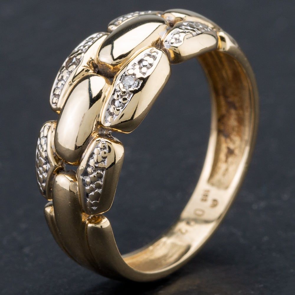 14ct Yellow Gold Brilliant Cut Diamond Set Chain Link Dress Ring