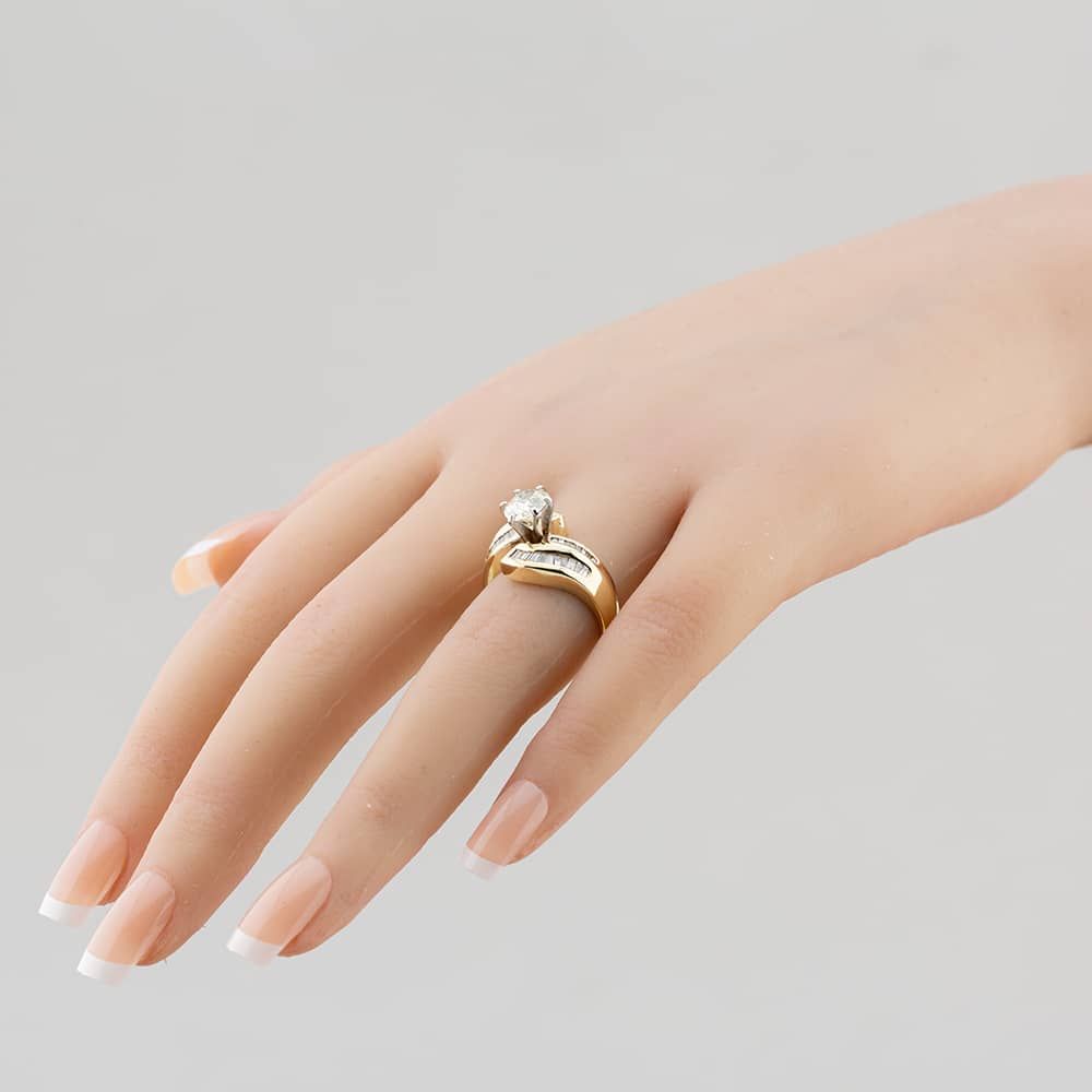 1.09ct Oval Cut Diamond Centre Stone & Two-Row Tapered Baguette Cut Diamond Set Shoulders