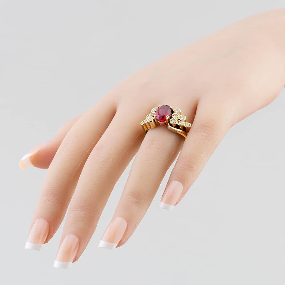 Second Hand 14ct Yellow Gold Certificated 3.00ct Rubellite Tourmaline & 0.70ct Brilliant Cut Diamond Oval Dress Ring 43351018 Second Hand 14ct Yellow Gold Certificated 3.00ct Rubellite Tourmaline & 0.70ct Brilliant Cut Diamond Oval Dress Ring 43351018