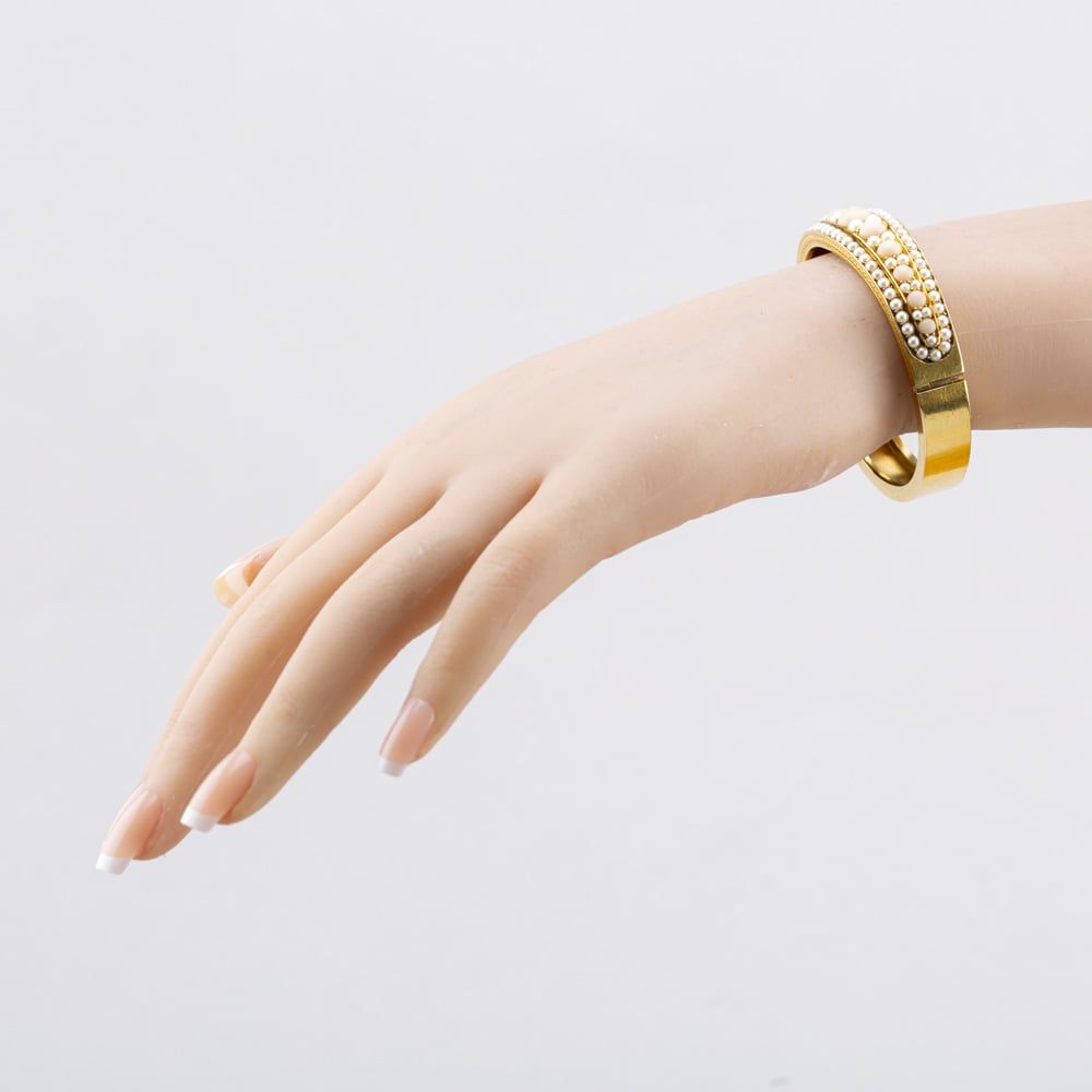 14ct Yellow Gold Coral & Pearl Standard Hinged Bangle