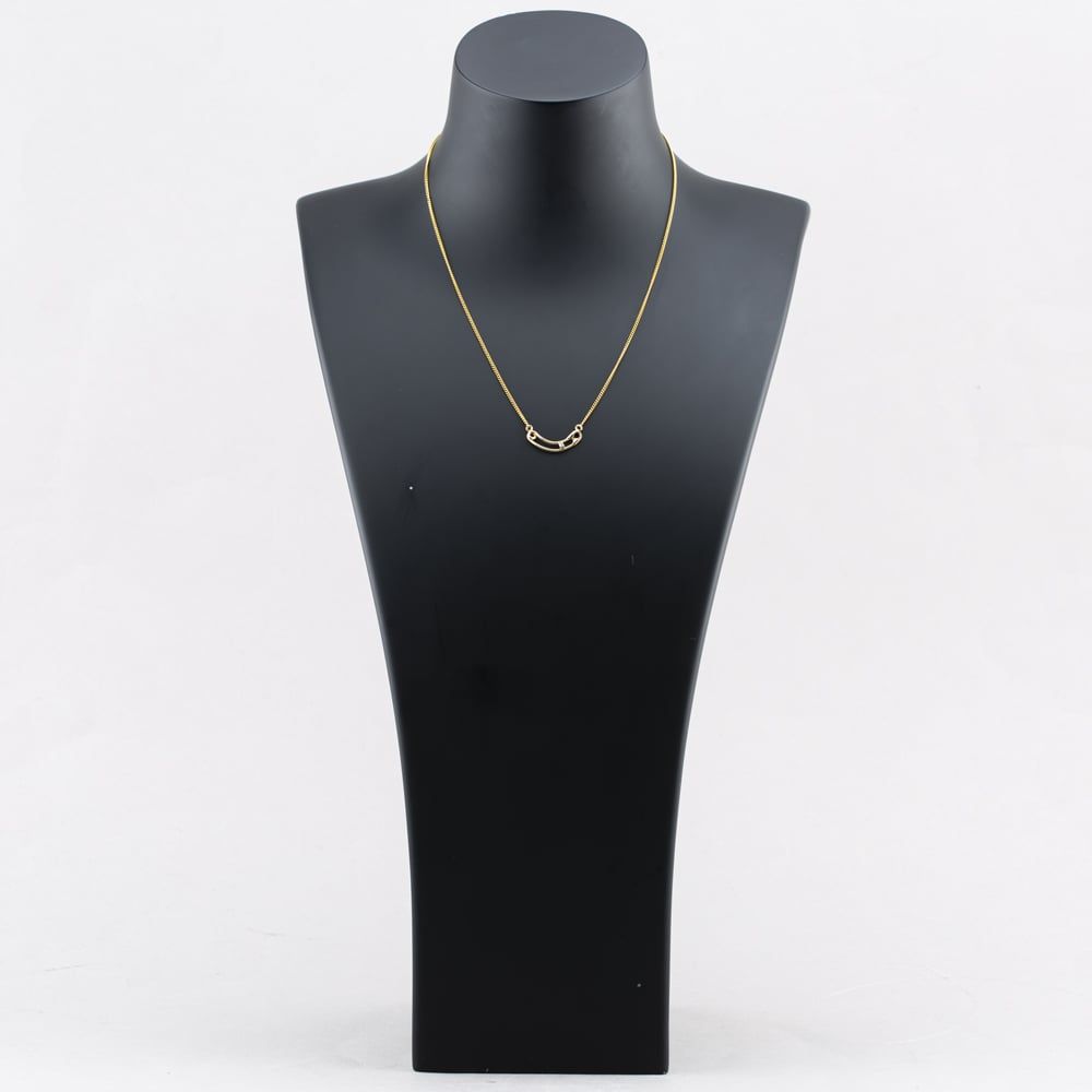 Second Hand 14ct Yellow Gold Diamond Crescent Shaped Safety Pin Pendant & 17 Inch Curb Chain 41142718