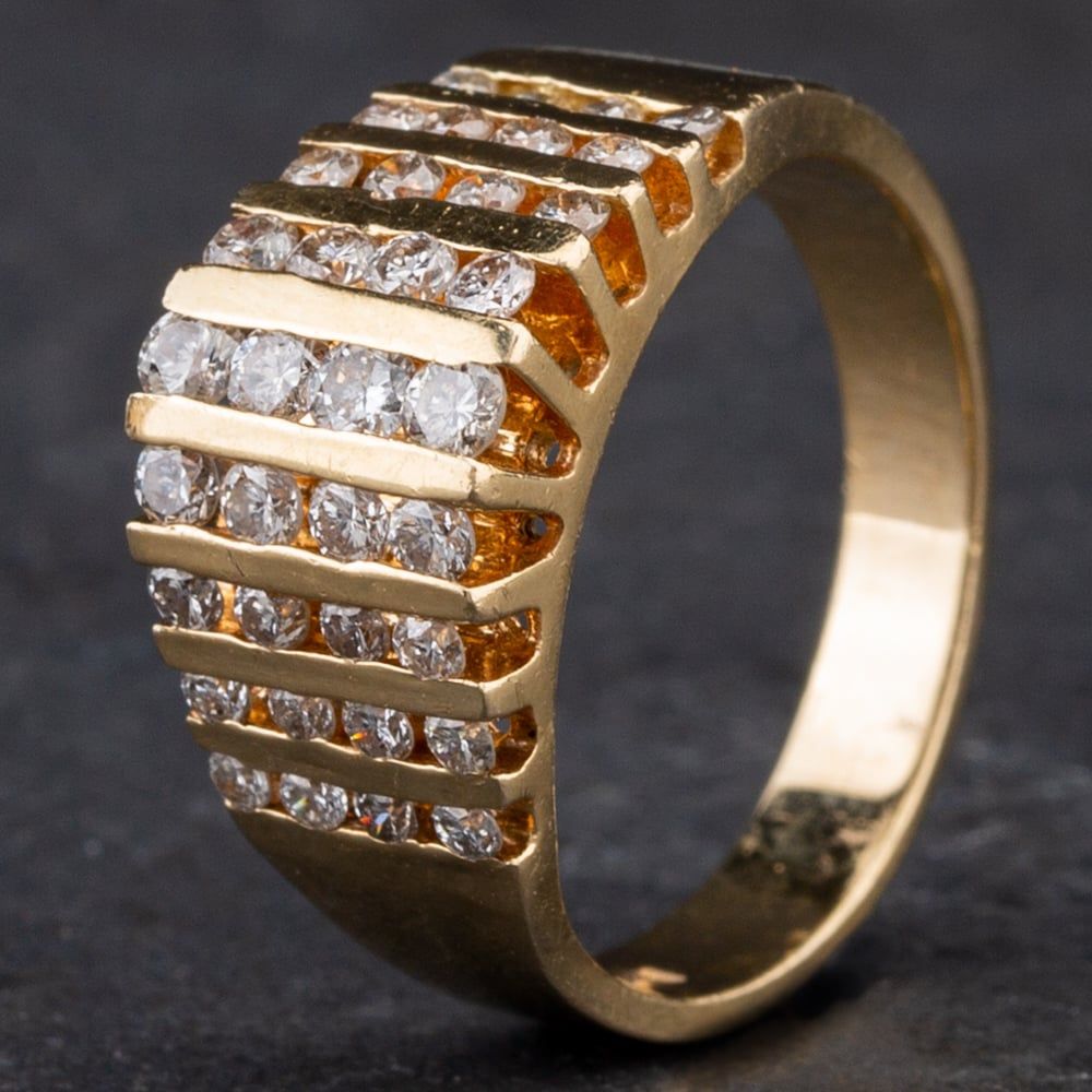 14ct Yellow Gold Diamond Four Row Pyramid Fancy Ring