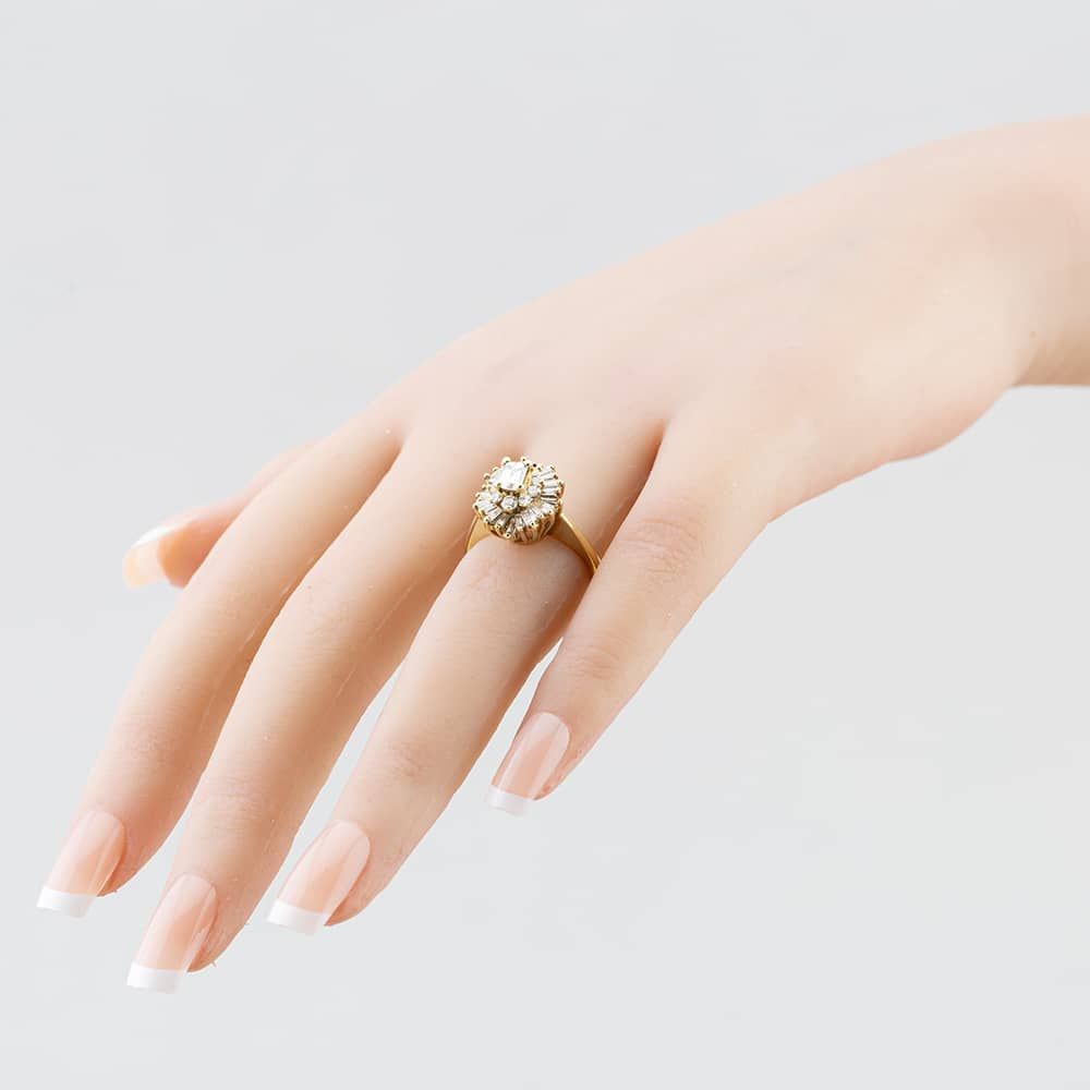 14ct Yellow Gold Diamond Multi Cut Ballerina Cluster Ring