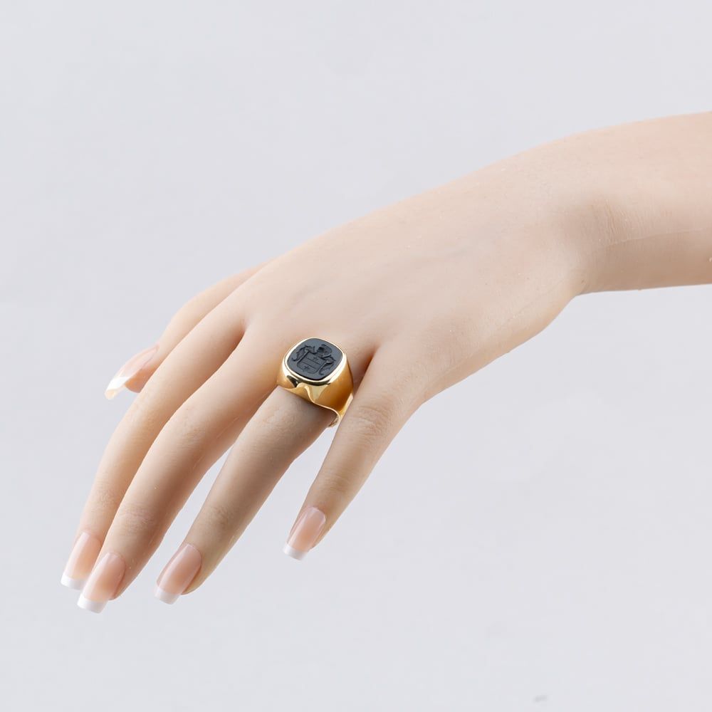 14ct Yellow Gold Onyx Intaglia Engraved Signet Ring