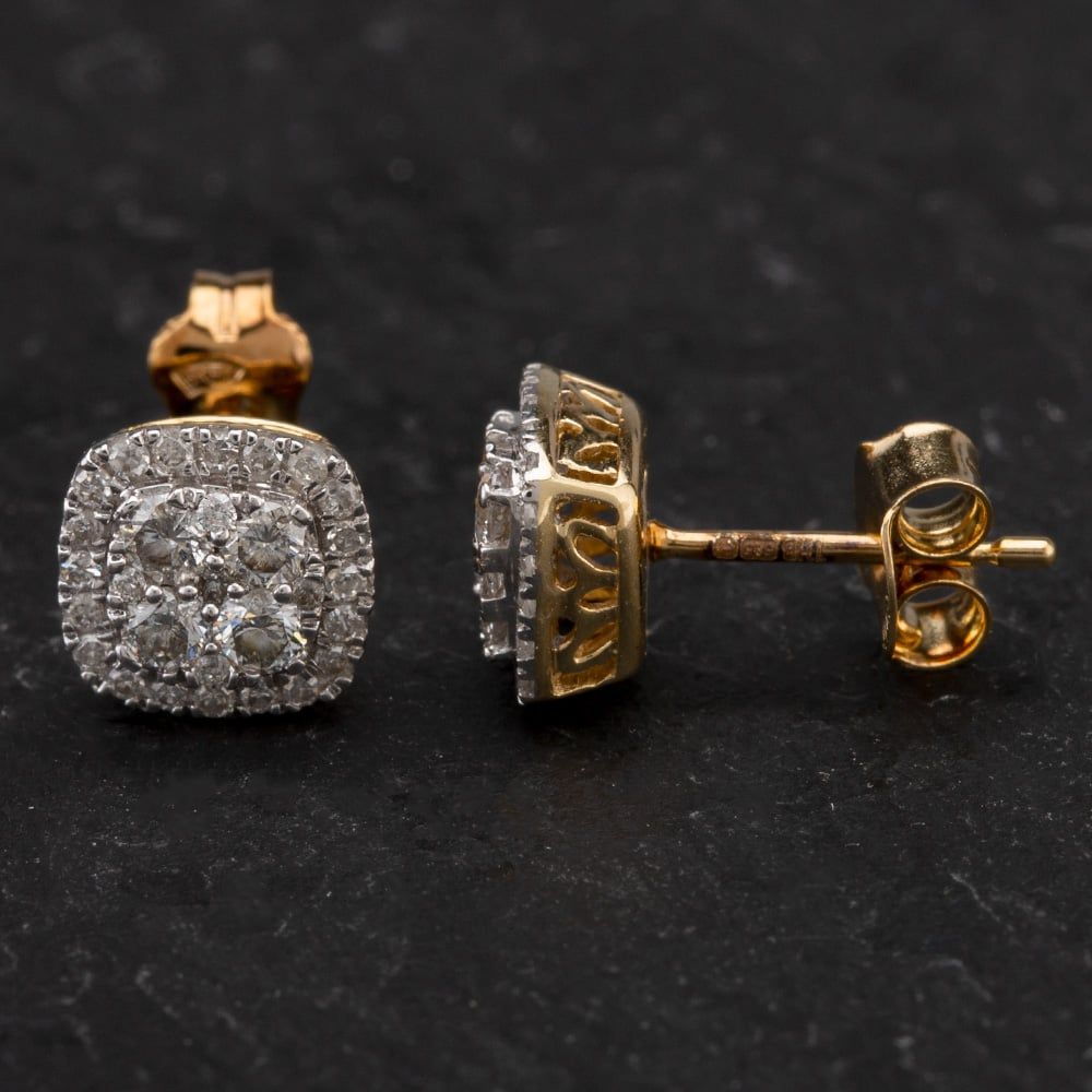 14ct Yellow Gold Brilliant Cur Diamonds Square Pave Style Cluster Stud Earrings Approximate Diameter 7mm Post Fitting Secured By Butterfly Backs