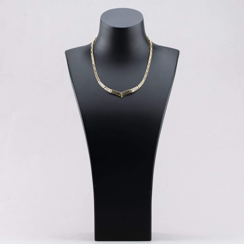 14ct Yellow Gold V Shaped Greek Key Design 17 Inch Collarette Chain