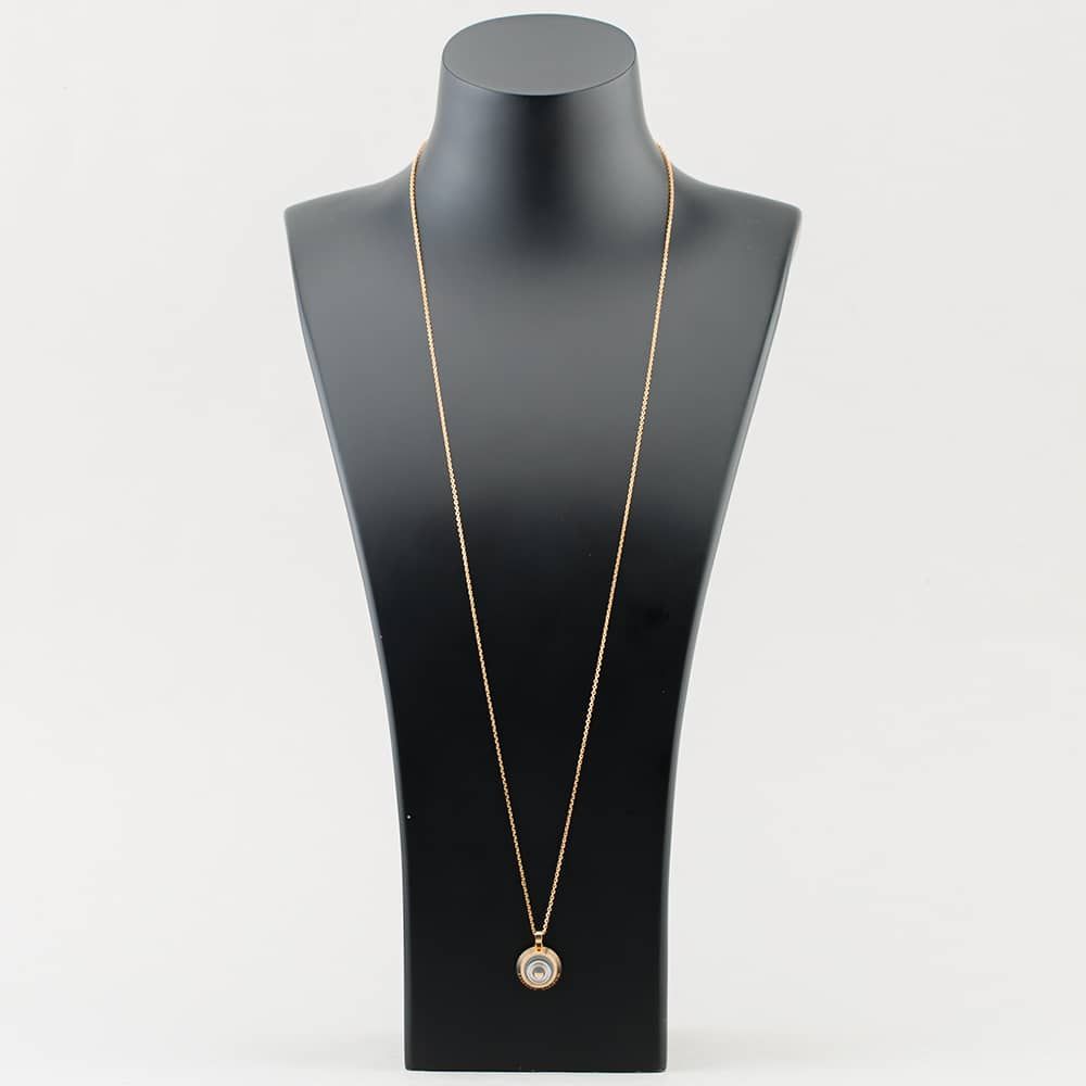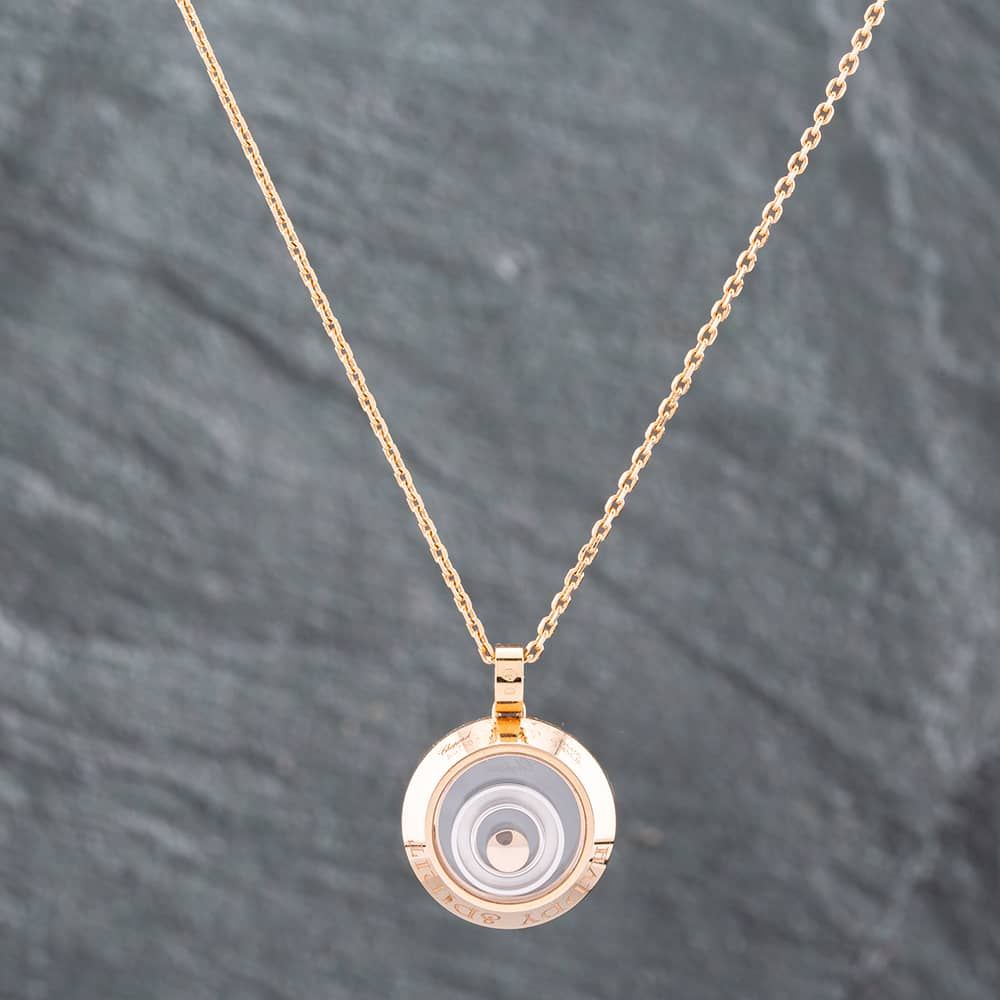 18ct Rose Gold Brilliant Cut Diamond Chopard Happy Spirit Round Pendant & 30 Inch Trace Chain