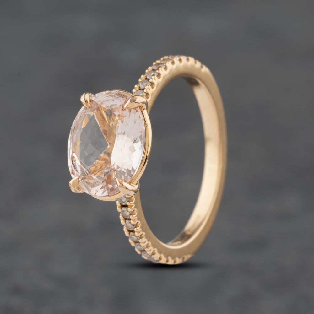 18ct Rose Gold Morganite & Brilliant Cut Diamond Oval Shoulder Set Solitaire Ring