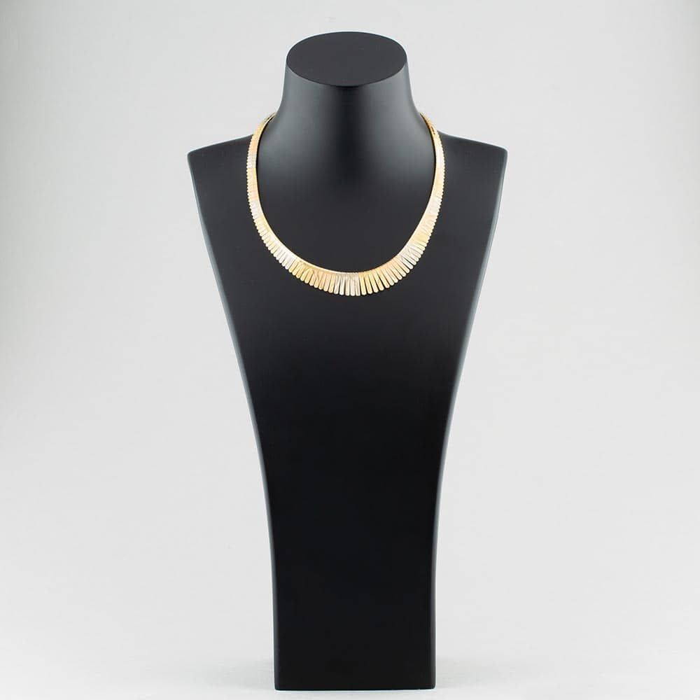 18ct Three Colour Gold Patterned Graduated 16 Inch Necklace