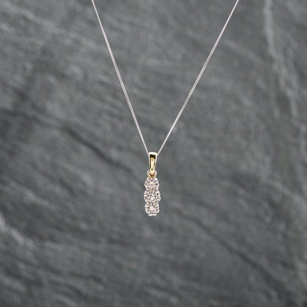 Second Hand 18ct Two Colour Gold 0.10ct Brilliant Cut Diamond Three Stone Gemstone Pendant & 18 Inch Curb Chain 41142821 Second Hand 18ct Two Colour Gold 0.10ct Brilliant Cut Diamond Three Stone Gemstone Pendant & 18 Inch Curb Chain 41142821