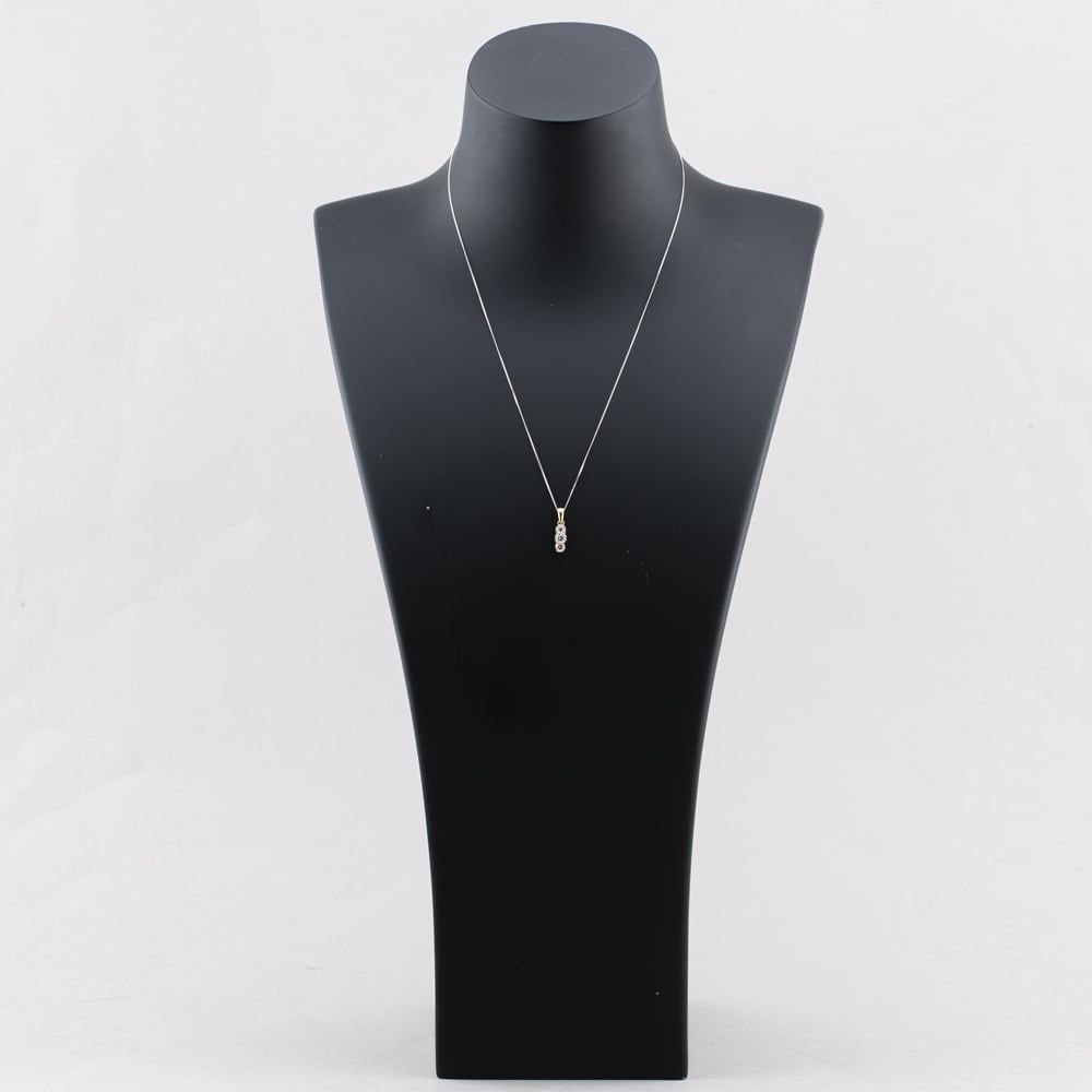 Second Hand 18ct Two Colour Gold 0.10ct Brilliant Cut Diamond Three Stone Gemstone Pendant & 18 Inch Curb Chain 41142821