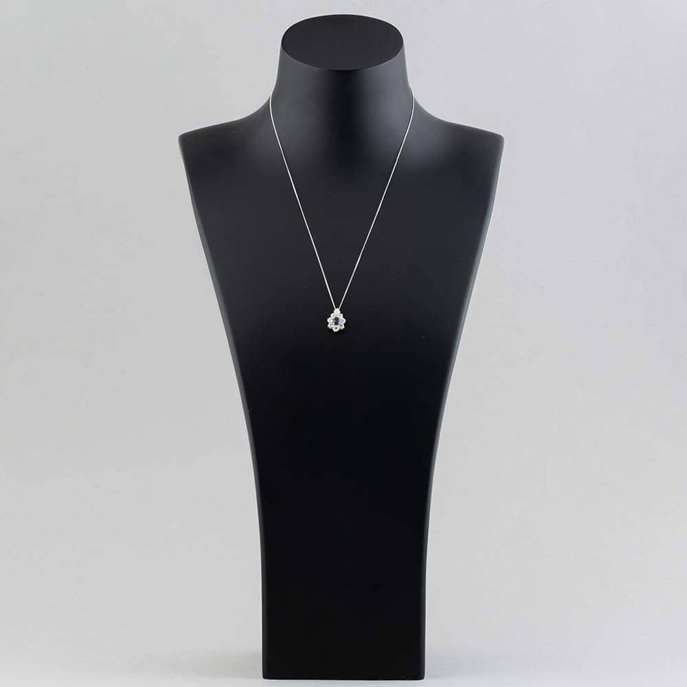 18ct Two Colour Gold 0.54ct Oval Cut Sapphire & 1.03ct Brilliant Cut Diamond Cluster Pendant & 18 Inch Curb Chain