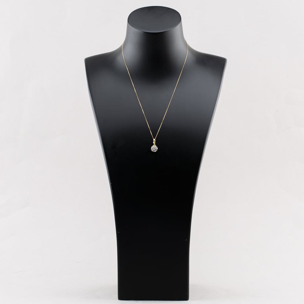 18ct Two Colour Gold Brilliant Cut Diamond Cluster Pendant & 18 Inch Curb Chain