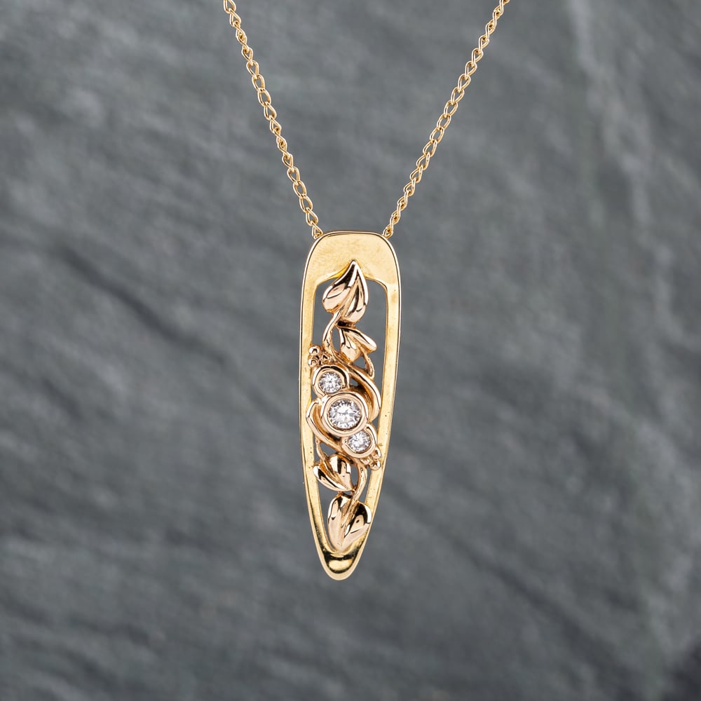 18ct Two Colour Gold Diamond Clogau Gemstone Pendant & 18 Inch Trace Chain