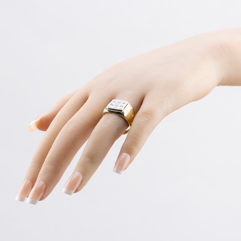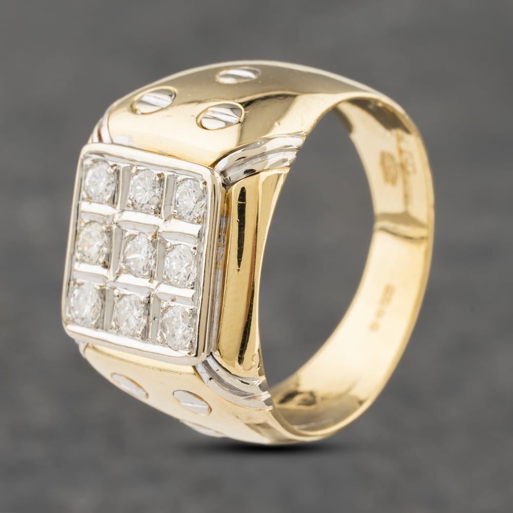 18ct Two Colour Gold Diamond Cushion Grid Signet Ring