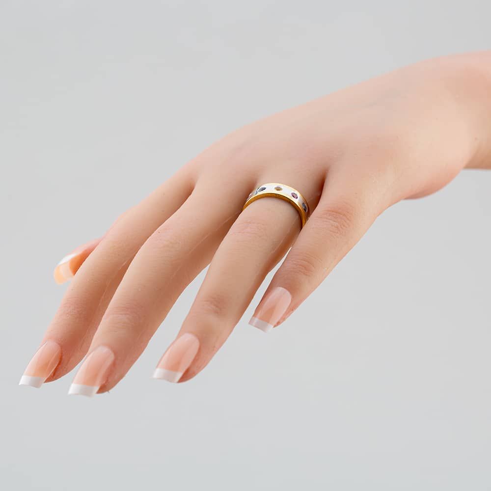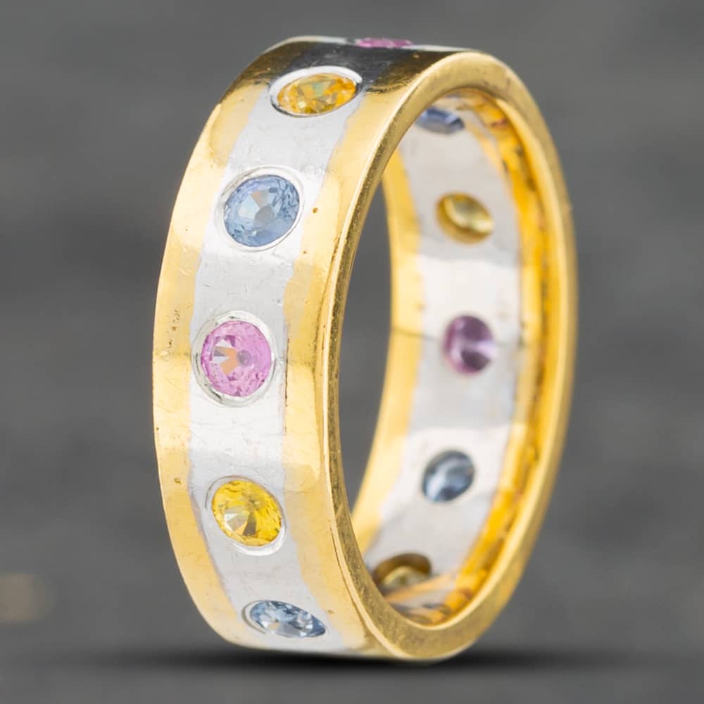 18ct Two Colour Gold Multi-Coloured Sapphire 6mm Wedding Ring