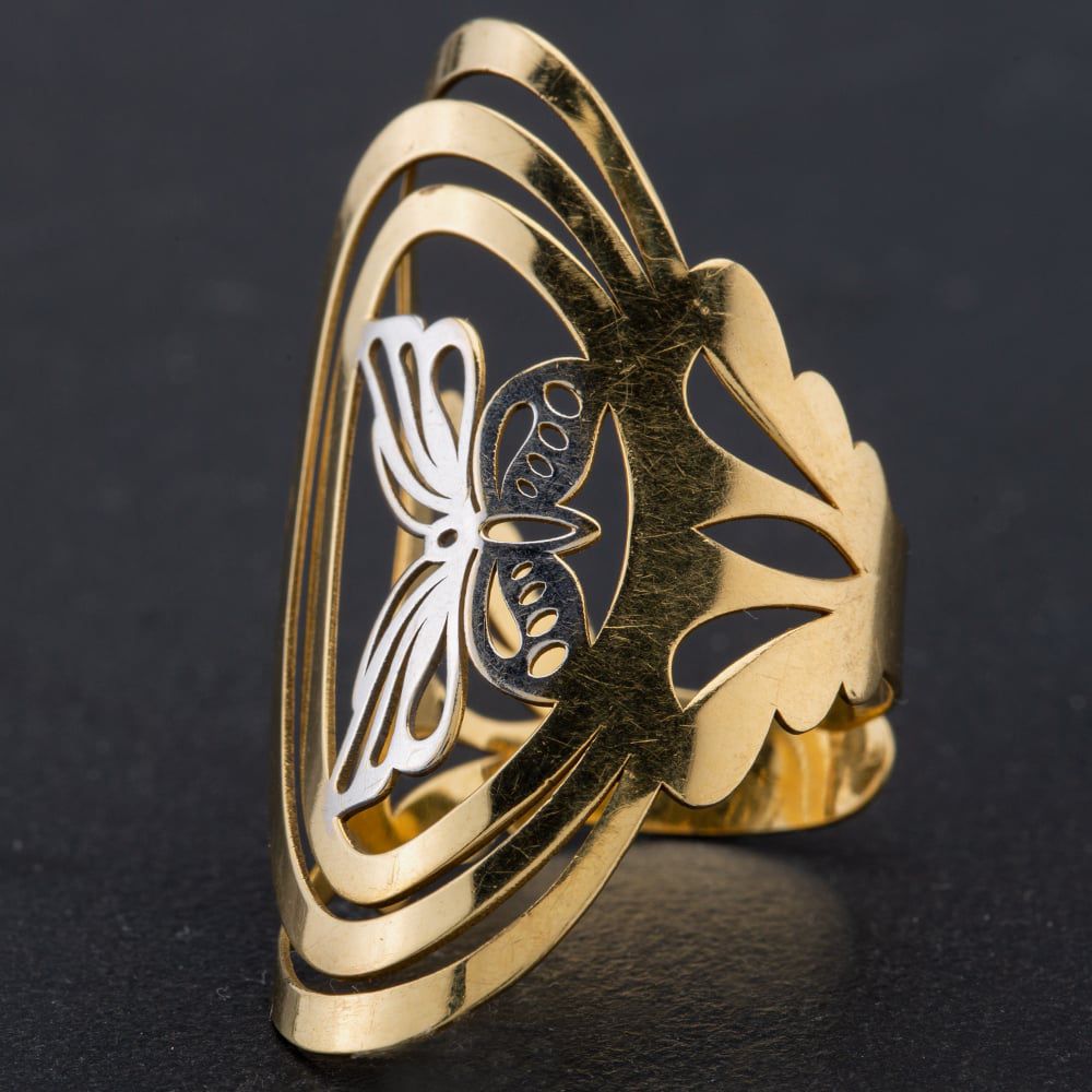 18ct Yellow and White Gold Oval Cut Out Butterfly Dress Ring Open Shank So Is Adjustable Fitting