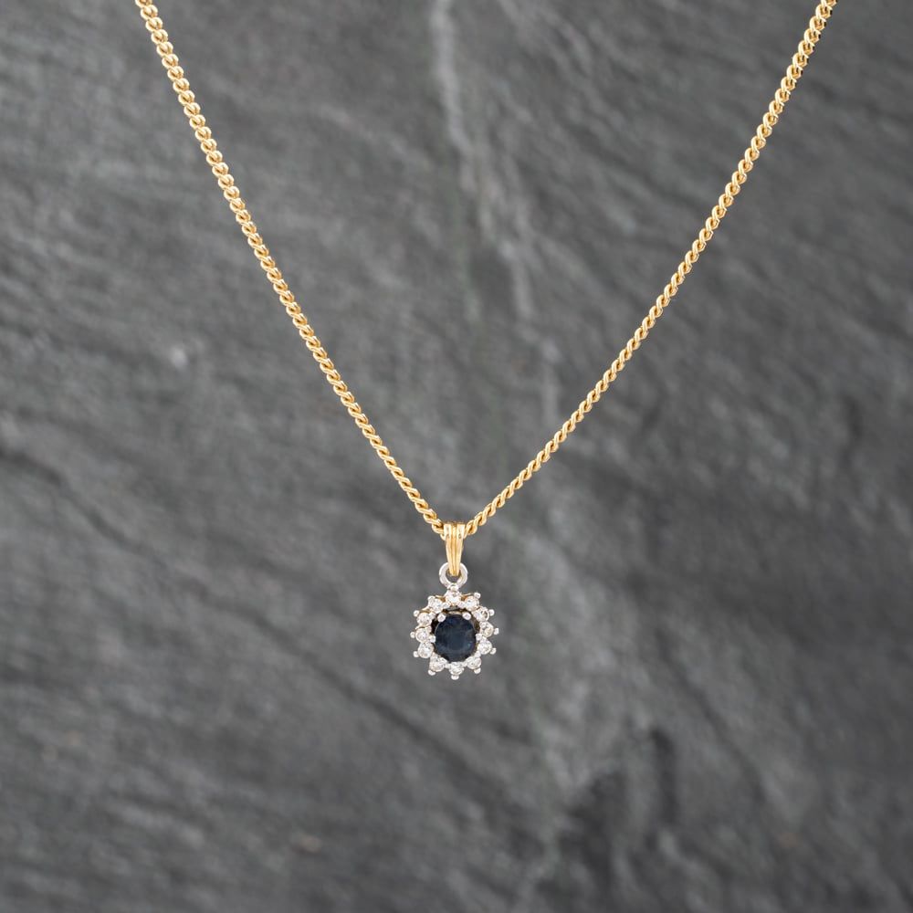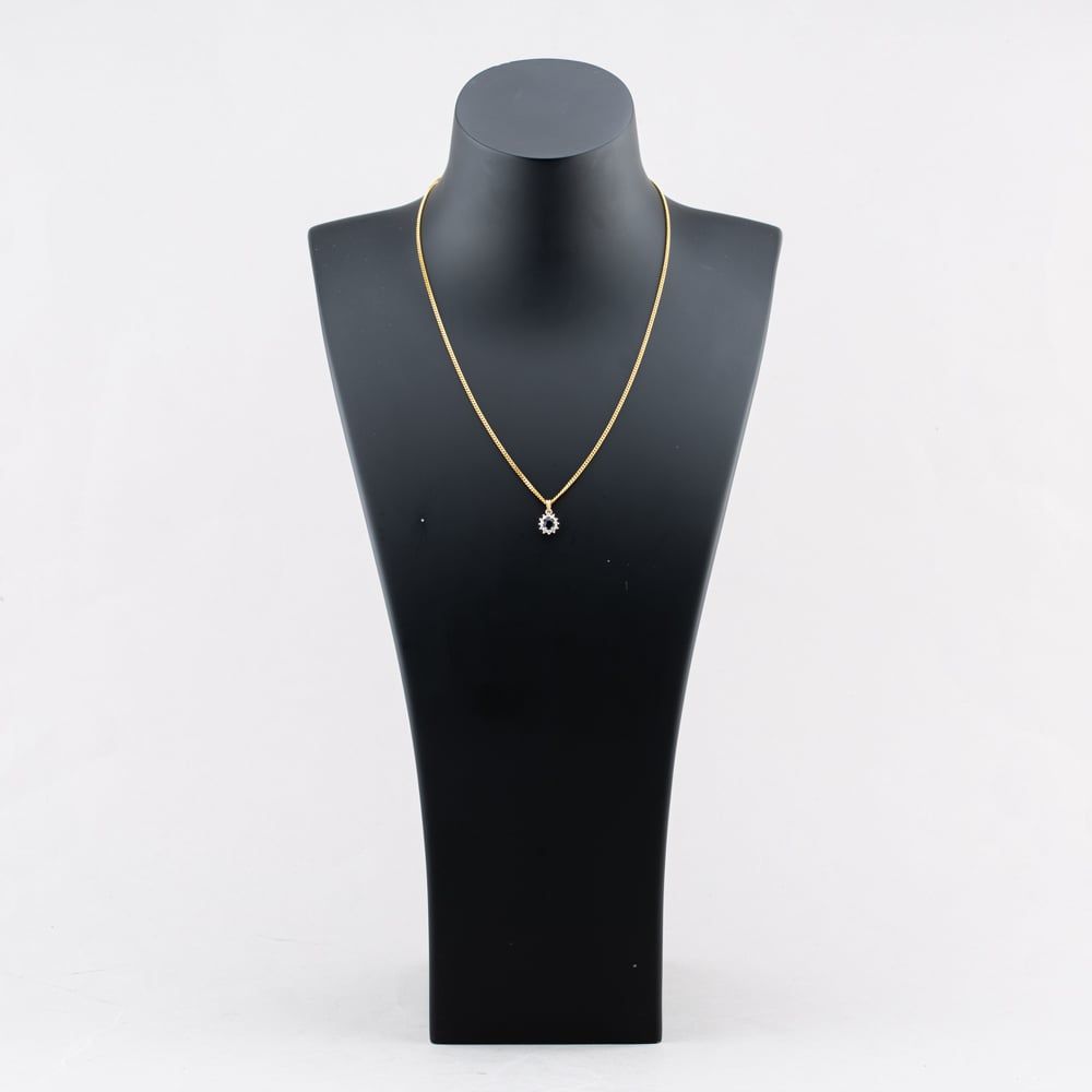 18ct Two Colour Gold Sapphire & Diamond Oval Cluster Pendant & 18 Inch Curb Chain