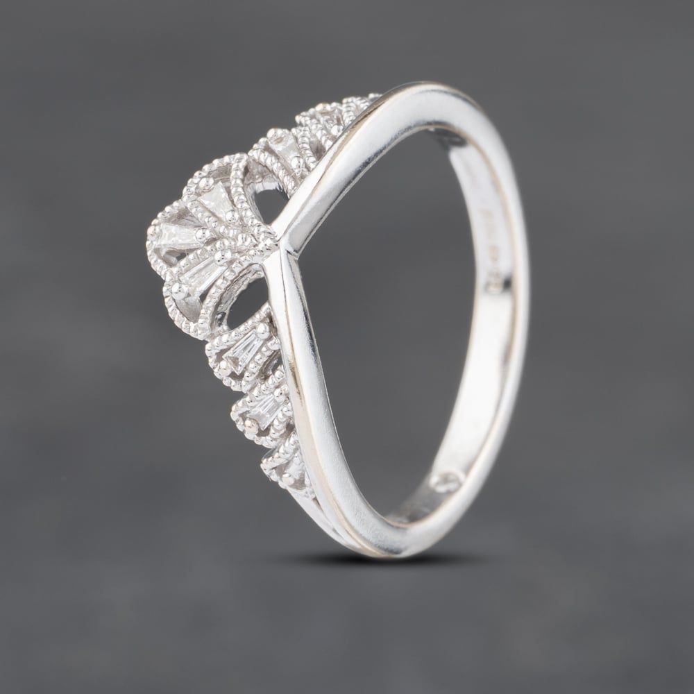 18ct White Gold 0.06ct Baguette Cut Diamond Wishbone Ring