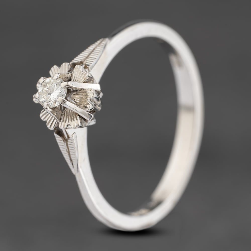 18ct White Gold 0.15ct Diamond Flower Shaped Diamond Cut Solitaire Ring