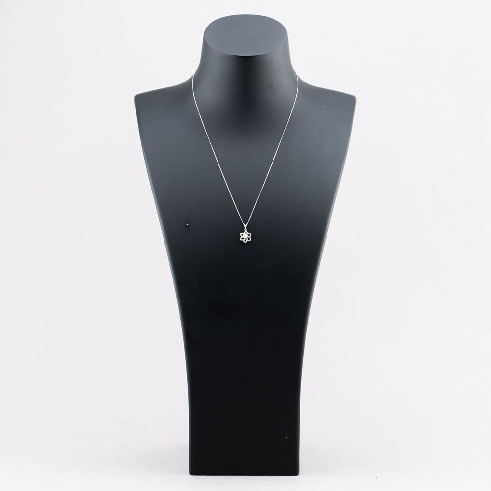 18ct White Gold 0.24ct Brilliant Cut Diamond Flower Pendant & 18 Inch Curb Chain