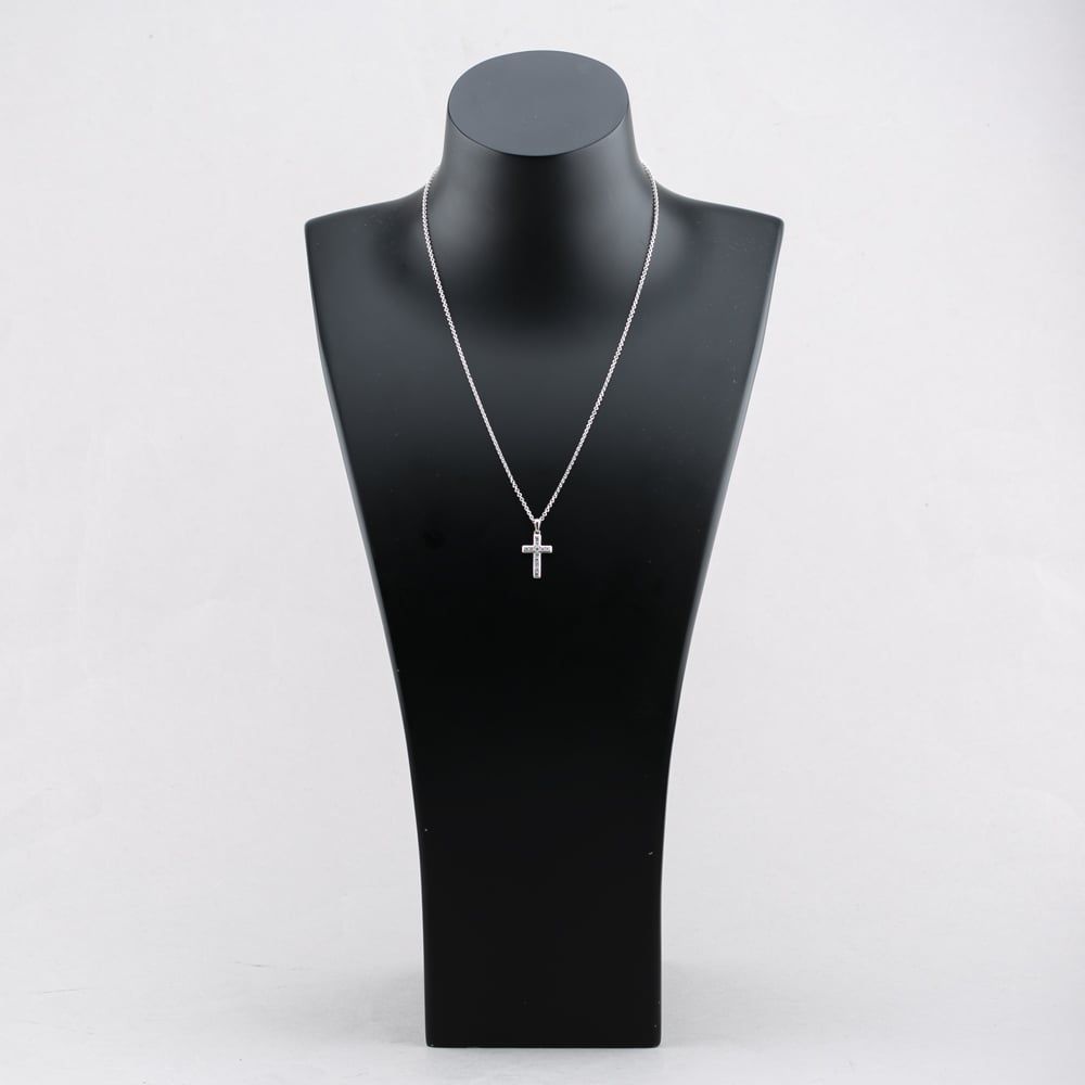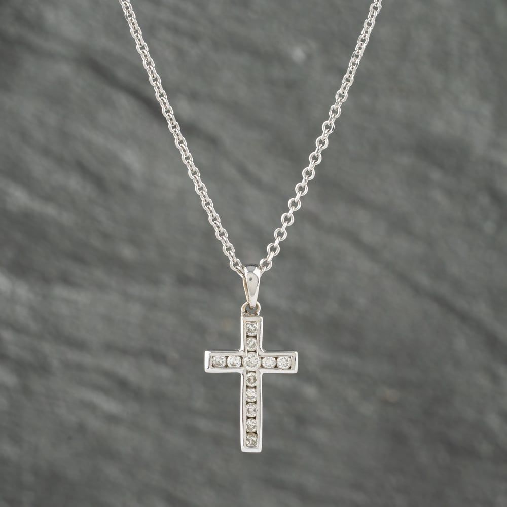 18ct White Gold 0.33ct Diamond Cross Pendant & 18 Inch Belcher Chain