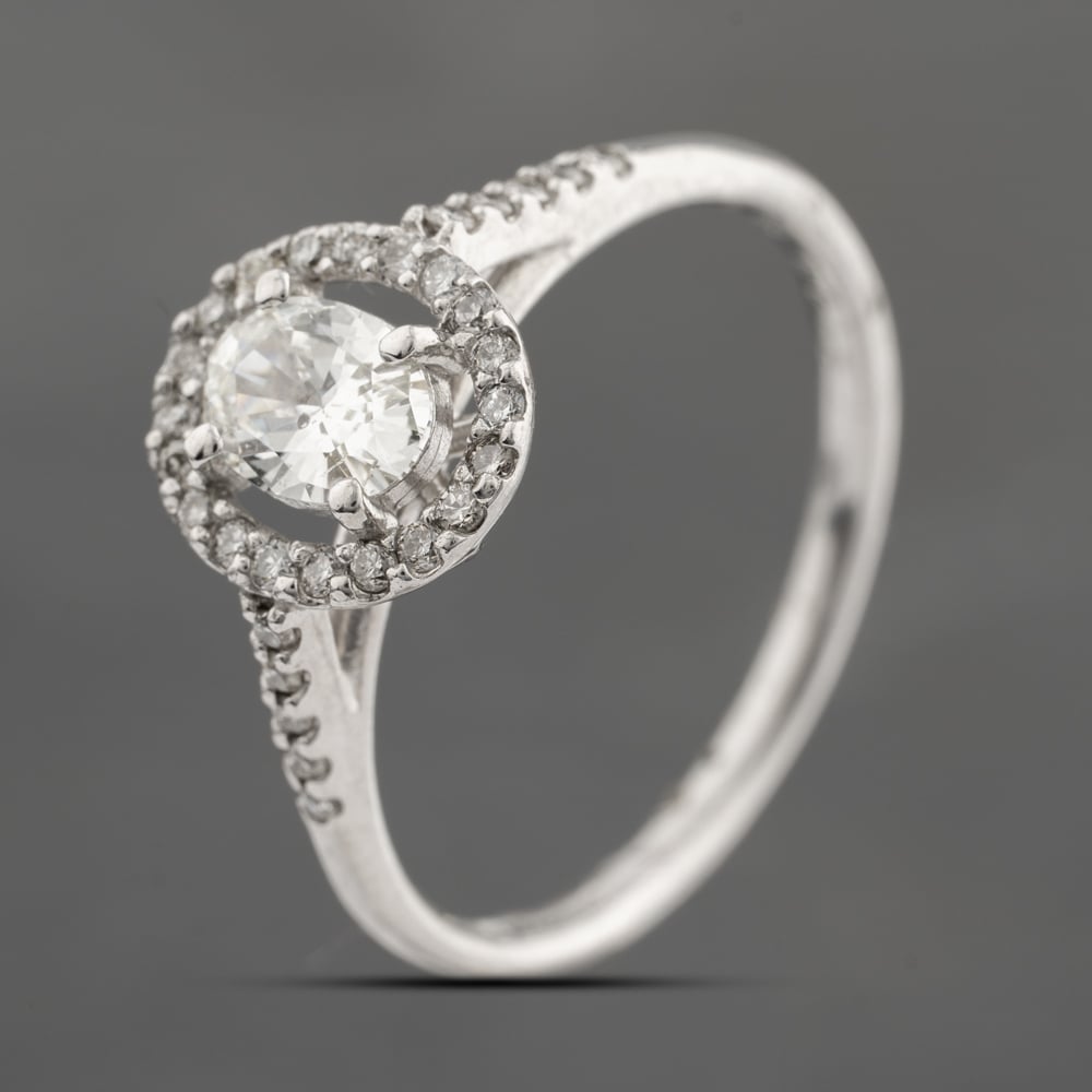 18ct White Gold 0.56ct Diamond Oval Halo Cluster Ring