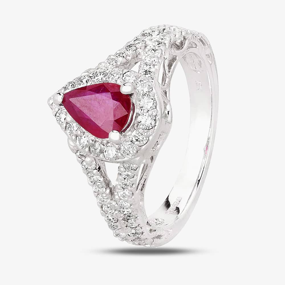18ct White Gold 0.95ct Pear Shaped Ruby and 0.70ct Diamond Cluster Ring