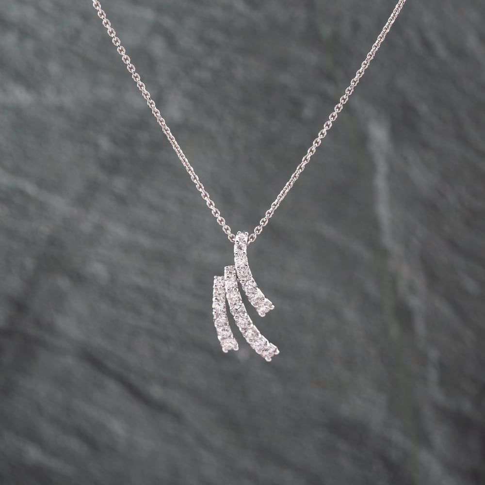 18ct White Gold 1.00ct Brilliant Cut Diamond 3 Bar Dropper Pendant & 16 Inch Trace Chain