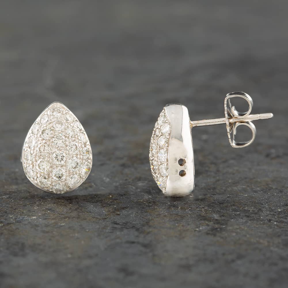Second Hand 18ct White Gold 1.00ct Brilliant Cut Diamond Pear Shaped Pave Stud Earrings 43171002 Second Hand 18ct White Gold 1.00ct Brilliant Cut Diamond Pear Shaped Pave Stud Earrings 43171002