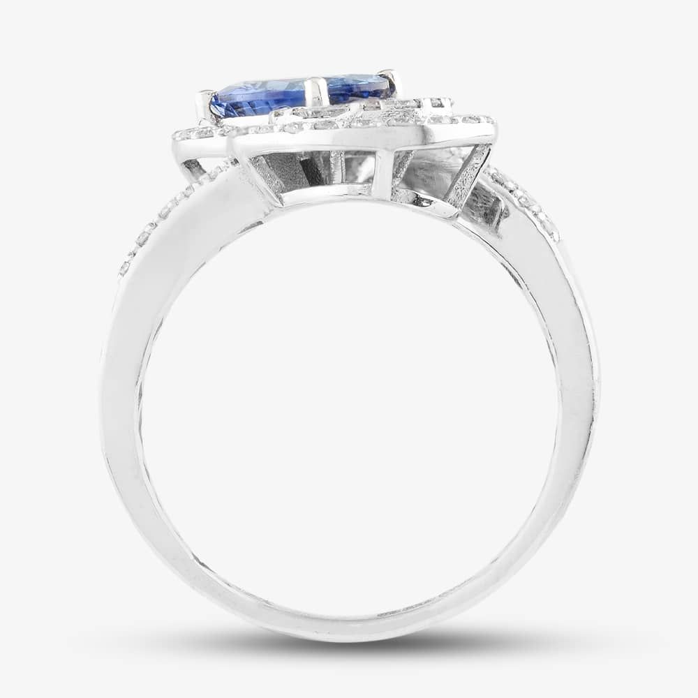 18ct White Gold 1.34ct Sapphire & 0.74ct Diamond Double Cluster Crossover Ring