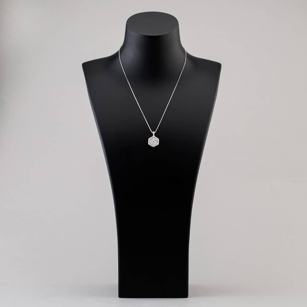 18ct White Gold 1.58ct Brilliant Cut Diamond Hexagon Stone Set Pendant & 18 Inch Box Chain