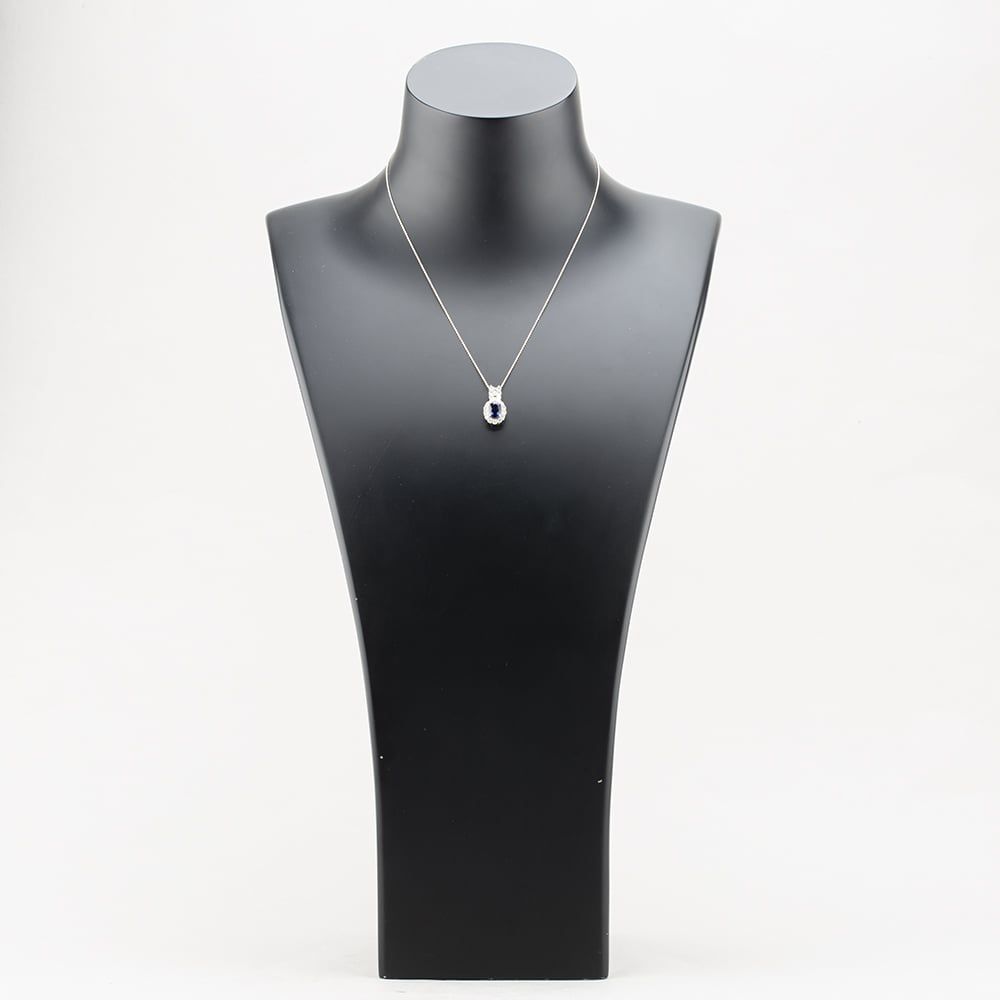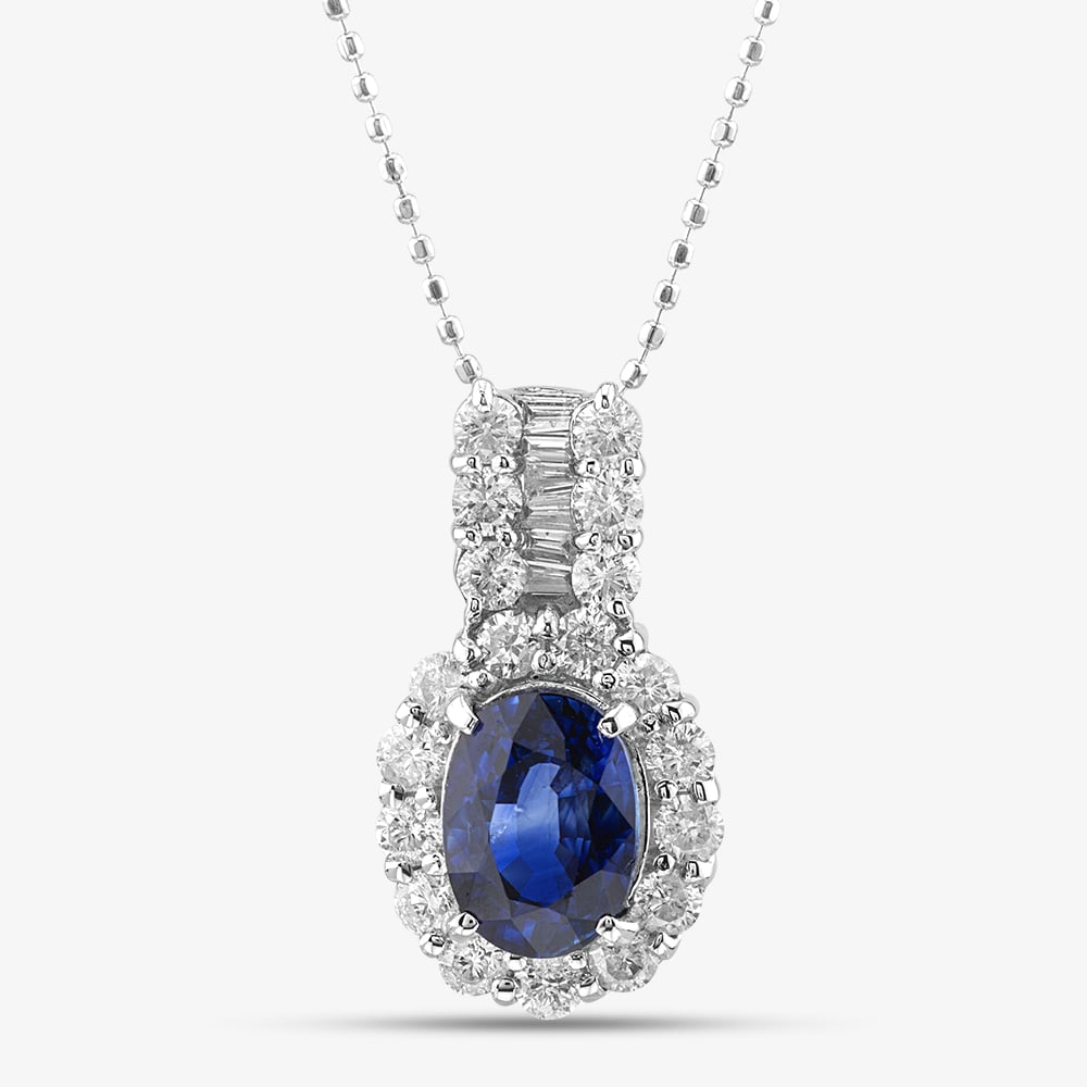 18ct White Gold 1.66ct Sapphire & 0.67ct Diamond Oval Cluster Pendant & 16 Inch Ball Chain