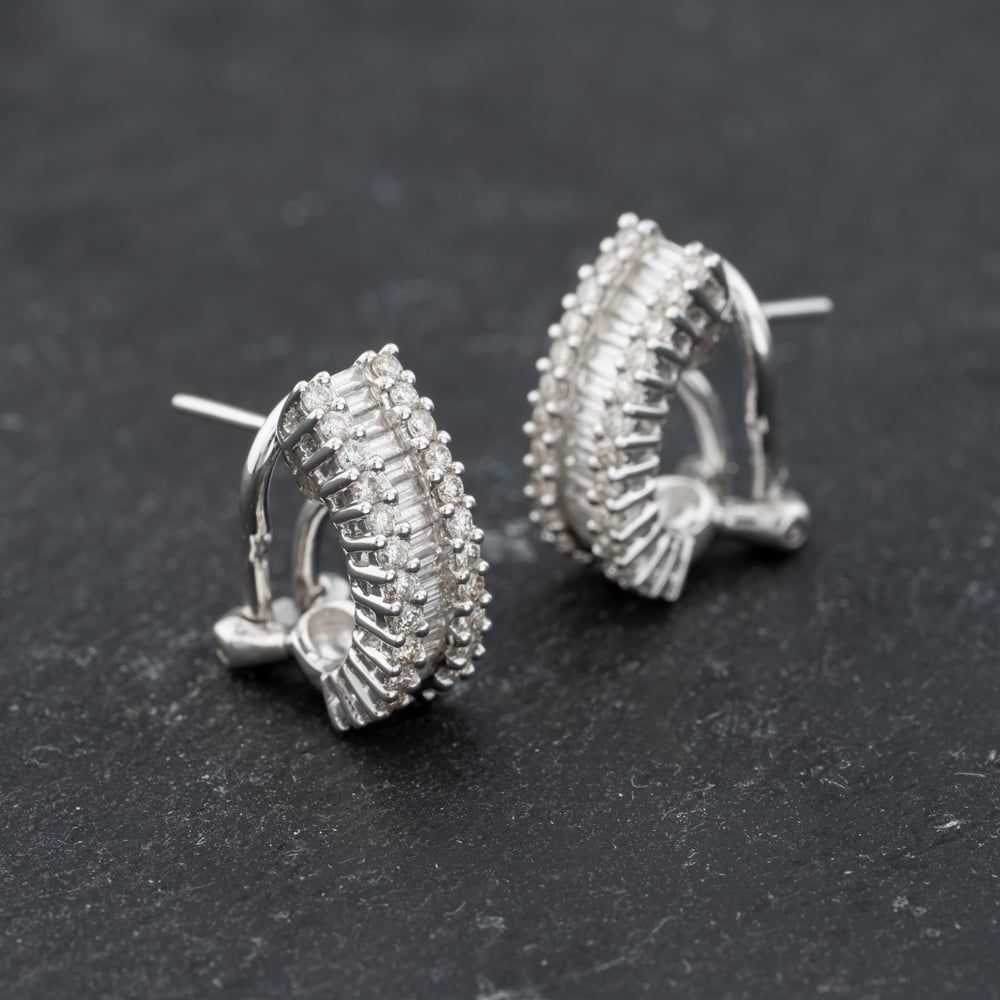 18ct White Gold 14.8mm 1.00ct Diamond 3 Row Leverback Earrings