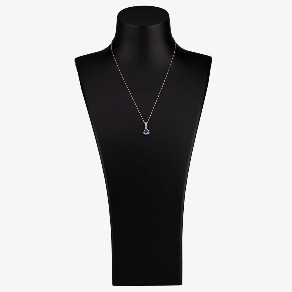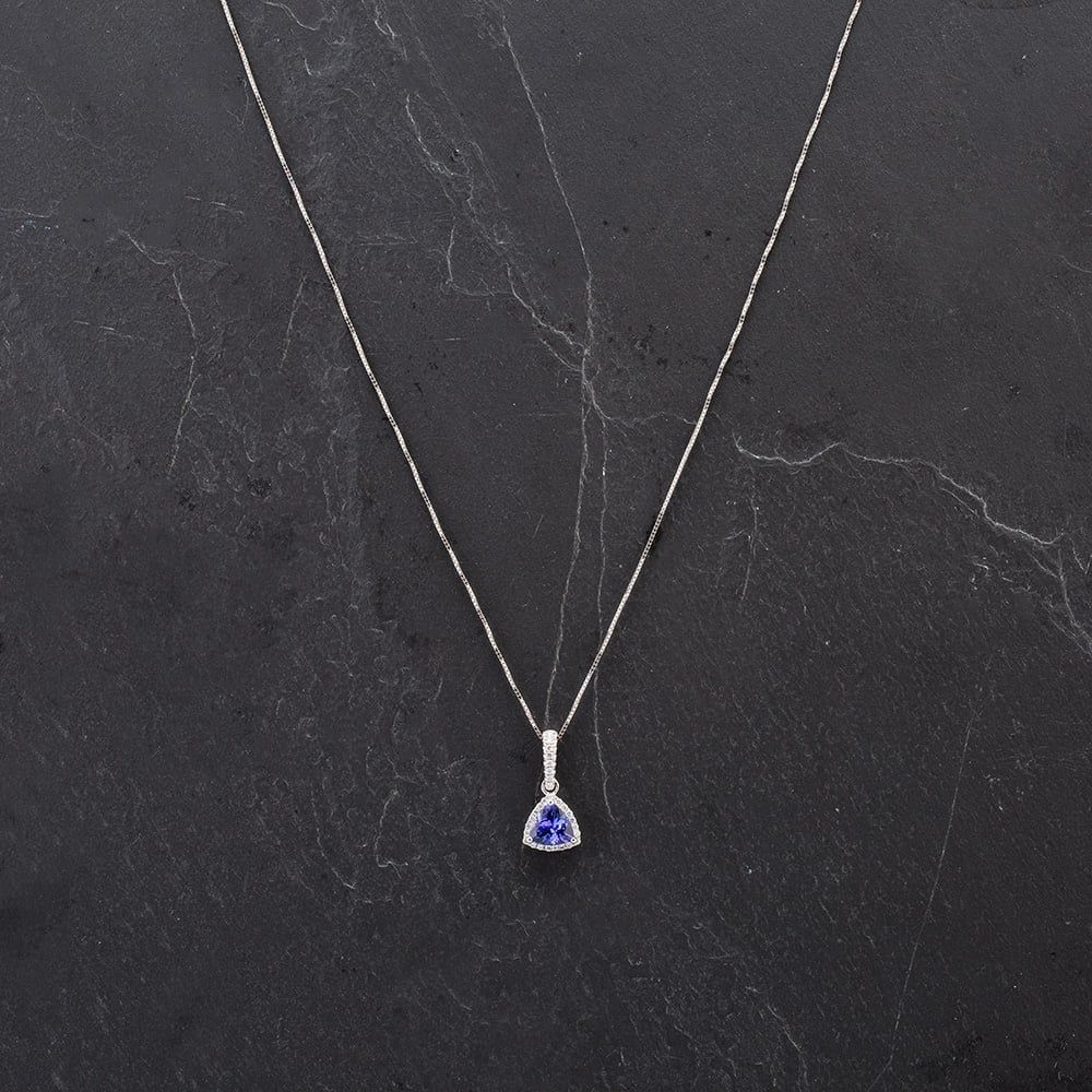 18ct White Gold Iliana Trillion Tanzanite and Diamond Pendant On 18" Box Necklace