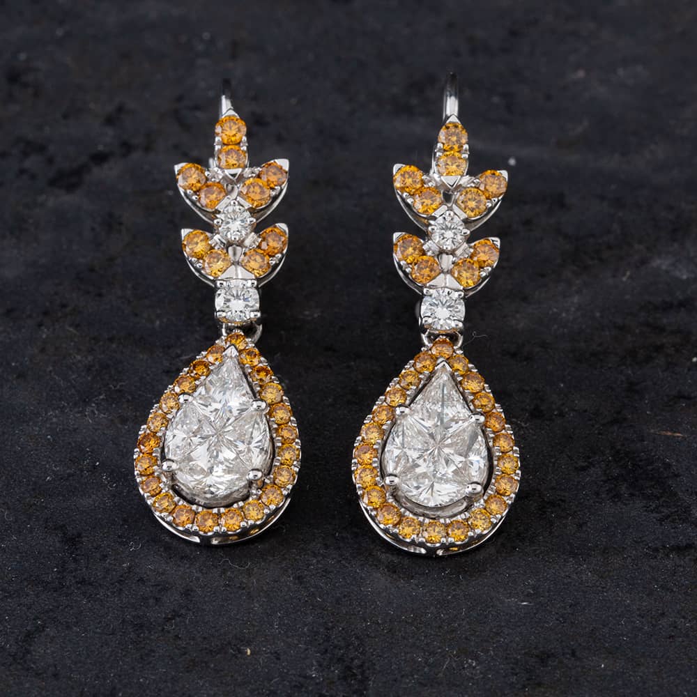 18ct White Gold 2.19ct Diamond & 1.40ct Brilliant Cut Yellow Diamond Dropper Earrings